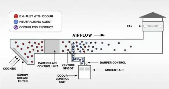 Our recirculation unit extracts the fumes, grease and odour into our bespoke filtration tower.