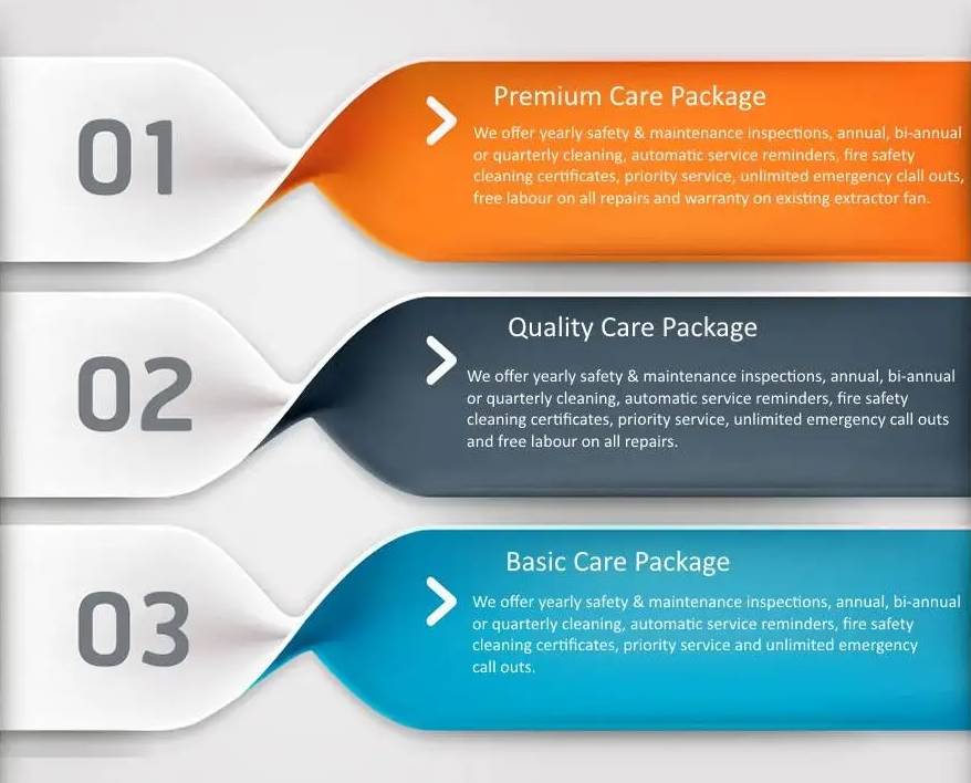 1. Site Assessment – We assess your commercial kitchen’s extraction structure requirements and offer the most effective configuration.