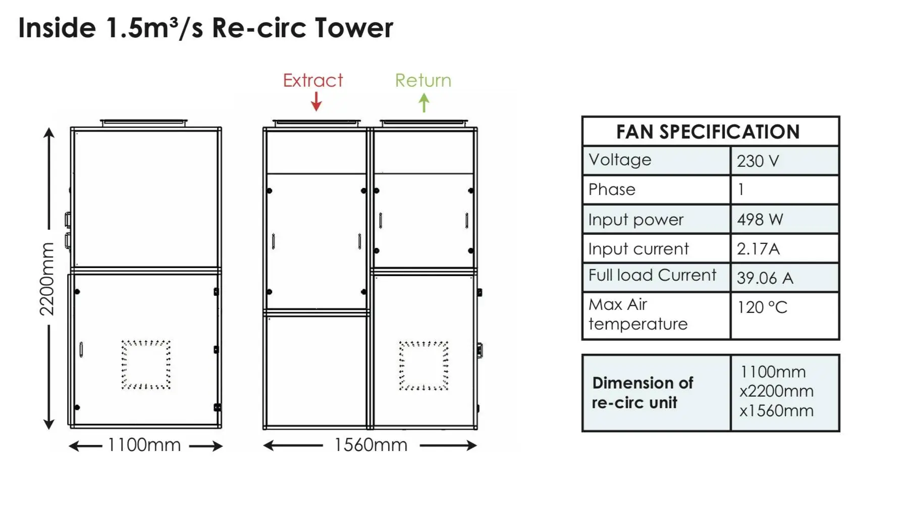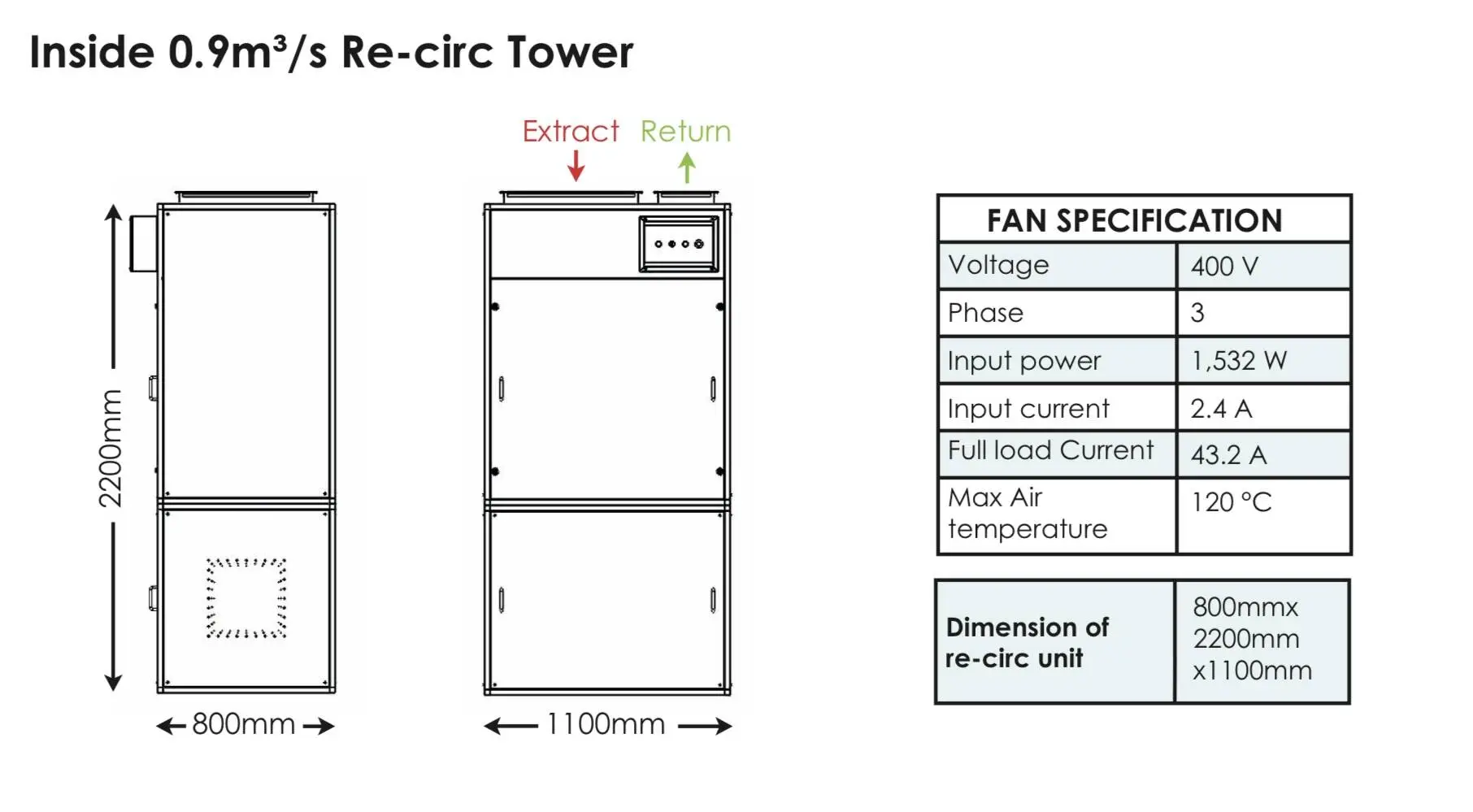 Please note: A Recirculation unit is only suitable for electric equipment. Following the DW172 regulations a requirement of a minimum of 35 air changes per hour must be achieved.